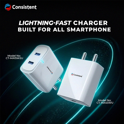 New Delhi, November 21, 2025: Consistent Infosystems, one of India’s fastest-growing brands in IT hardware, consumer electronics, and security solutions, launches new high-performance Mobile Chargers. The launch includes two models, the 45W Flash Charge 2.0 Charger and the 15W Fast Charger, both equipped with a Type-C cable for enhanced convenience, offering users faster, safer, and more reliable charging on the go.
